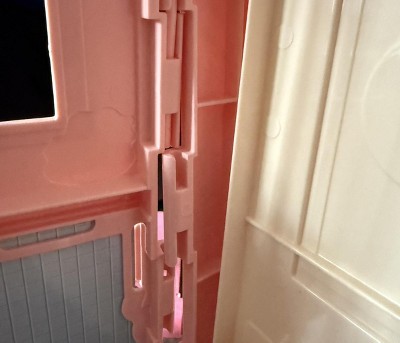 Plastic walls float away & while a smaller Barbie house is nice in idea, the smaller 1st floor doesn’t even fit a Barbie?!