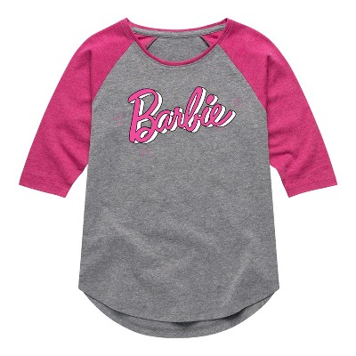 Barbie - Live & Play Outside the Box - Toddler And Youth Girls Raglan Graphic T-Shirt - Step into the glamorous pink world of Barbie with our officially licensed graphic garments for the fashion-forward! Whether you dream of being a fashion designer, a mermaid princess, or a world-traveling explorer, our garments bring Barbie's world to life with vibrant colors and playful prints. Crafted with quality materials and attention to detail, each piece ensures comfort and durability for all-day play. Express your unique sense of style and imagination with our exclusive Barbie graphic apparel!