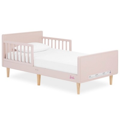 Barbie × Evolur Los Altos Toddler Bed with Wooden Safety Rails, Low-to-Floor Design, JPMA Certified – Safe Transition Bed for Toddlers