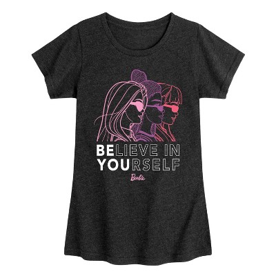 Girls' Barbie Malibu Athletic Department Fitted Short Sleeve Graphic T-Shirt - Heather Black - 5T