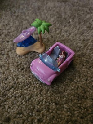 - This playset includes a small-scale recreation of the Beach Convertible with a 1.5-inch doll, roadside accessory and surfboard with a wow color-change moment!