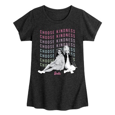 Girls' - Barbie - Multi-Color Choose Kindness Fitted Short Sleeve Graphic T-Shirt
