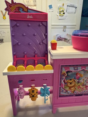 [This review was collected as part of a promotion.] This is the most fun Barbie set to date. My kids love playing with the game, tokens and tickets. There are even prizes to choose from. They also love the cotton candy machine with 3 different cotton candy colors to choose from.