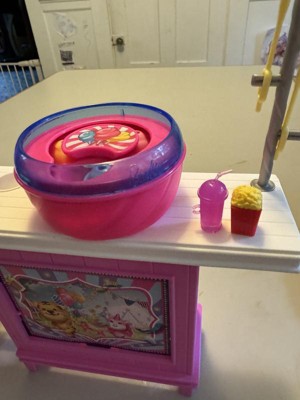 [This review was collected as part of a promotion.] What a fun set. We had so much fun playing Barbies tonight. From winning cute prizes to making cotton candy what little girl wouldn't have fun. The colorful tickets were definitely a hit. I do wish more than one of each color came with the set. I also wish the popcorn was able to click into the table top like the drink is able to. The set is definitely kid friendly with it's vibrant colors and easy to use pieces.
