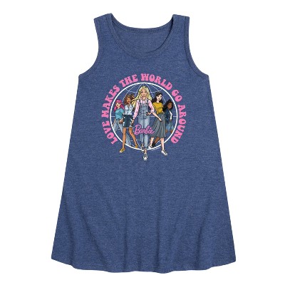 Girls' Barbie Patterned Love Graphic Sleeveless Aline Dress - Heather Navy - 3T