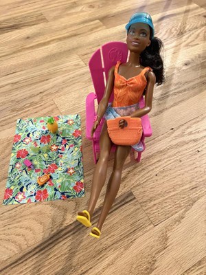 Aloha! Barbie "Brooklyn" doll lands in paradise with this Hawaii inspired Pink Passport doll set. With accessories like a beach chair, towel, visor, and pineapple smoothie drink -this Barbie doll is ready to soak up the sun and dive into island vibes. Kids can explore the world with Barbie on all her Pink Passport adventures! Where to next Doll cannot stand alone. Colors and decorations may vary.