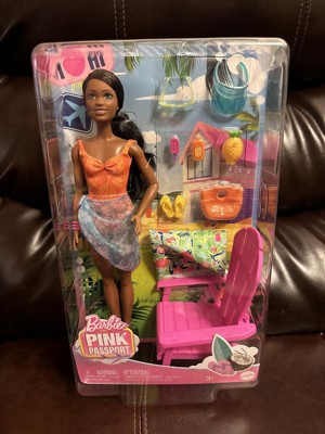 Barbie 12.7" Pink Passport Hawaii Brooklyn Doll Brown Hair/Brown Eyes Playset with Clothes & Travel Accessories