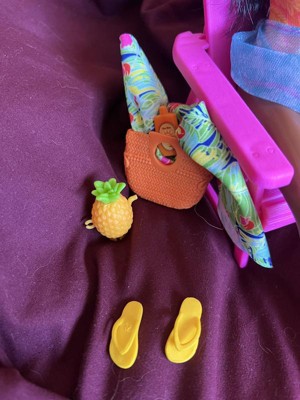 - With accessories like a visor, flip flops, sarong, and refreshing treats -this doll is packed for the perfect beach day. Don't forget the sunblock!