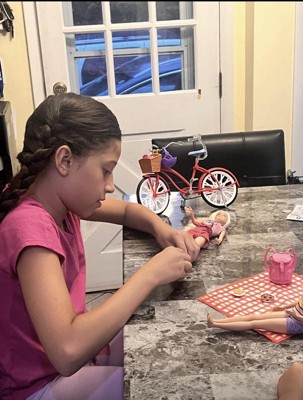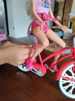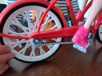 - This Barbie doll has bendable knees to really "ride" the bicycle