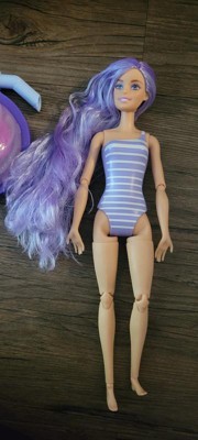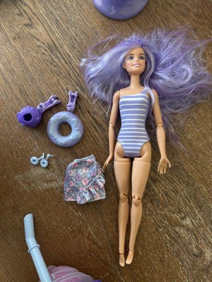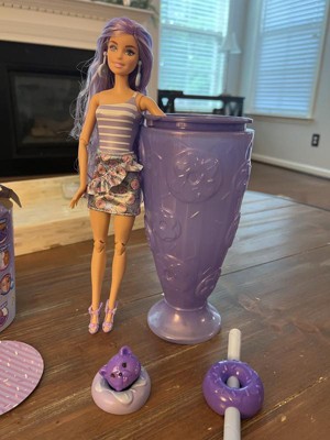 [This review was collected as part of a promotion.] My daughter loves reveal toys and Barbie so this was a lot of fun! Each reveal has an accessory for Barbie plus sand to play with (aka Barbie at the beach!)! Cold water didn't work for us to reveal the sparkles on her cheek so we used an icecube! Her hair came with the dark purple streak. It didn't change colors with water or ice. I wish the straw was an actual straw so you could drink out of the Sundae cup. Overall, it is still a great toy! It's summer so my daughter loves putting her Barbie in the pool!