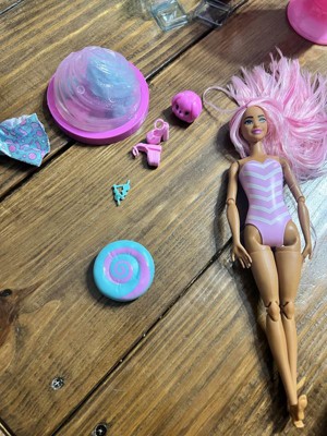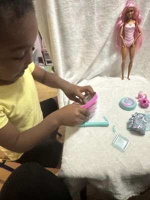 [This review was collected as part of a promotion.] My daughter was so excited when she received this Barbie! The opening was exciting as there were surprises while opening. She loved the Barbie and her colorful hair! It was such a fun experience unpacking this Barbie and all the little treats throughout.
