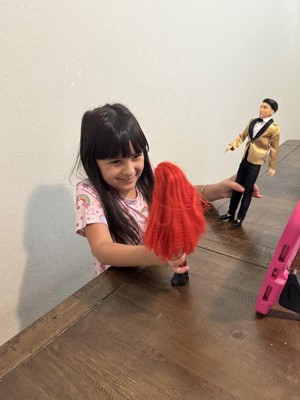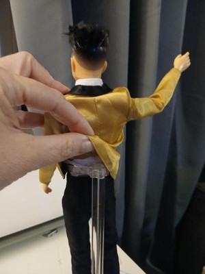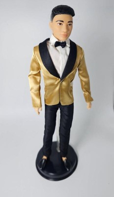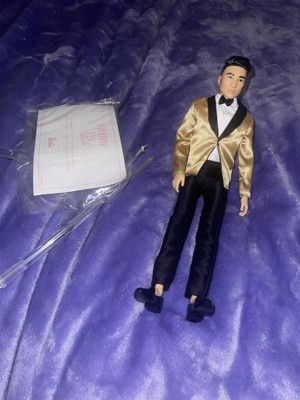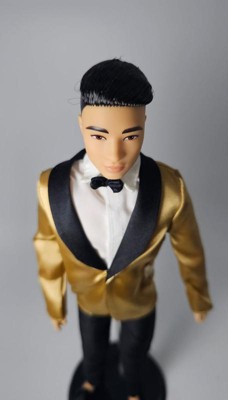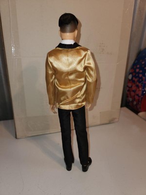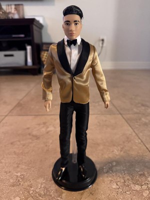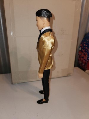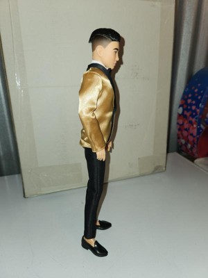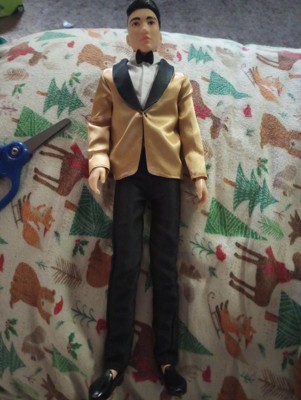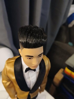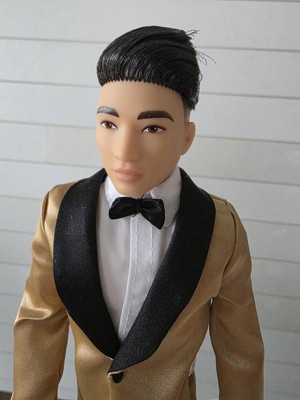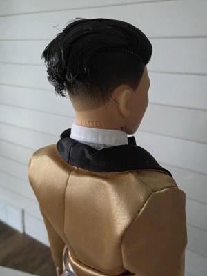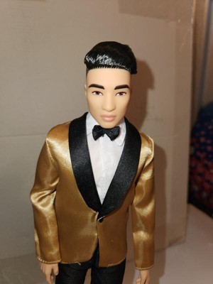 [This review was collected as part of a promotion.] Hanfsome Ken doll for the first time Ken looks great fancy and classy. My kids love his satin gold jacket with black bow tie he has a classic yet sophisticated look that is a great toy and collectiable his hair is well volumed and creates a ballroom look unlike anything sern befire