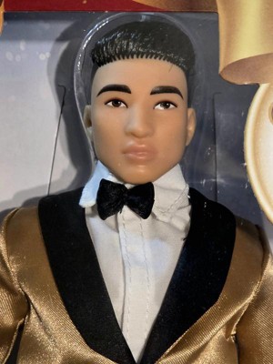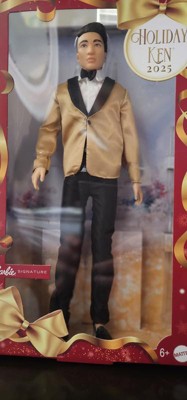Barbie Signature 2025 Holiday Black Hair Ken Collectible Fashion Doll wearing Full Suit with Golden Jacket