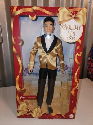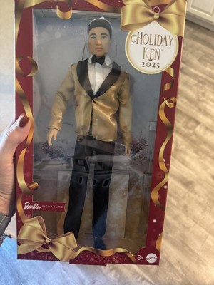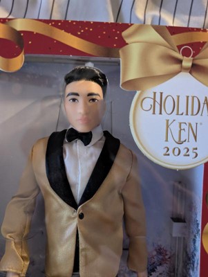[This review was collected as part of a promotion.] The 2025 Holiday KEN Doll is a great looking doll and would look absolutely fantastic standing next to any holiday BARBIE. He is dressed for a very elegant occasion with his gold jacket and black bow tie, and even has his hair combed back just right. However, that is about all he is really made to do it seems. KEN does come with his own stand for just that purpose too. My son who played with the doll did not like the fact you couldnt take the jacket off and put it back on the was that it was then. The jacket had a stitch where it supposedly buttoned in the front, so if you cut the stitch then there was no way to button the jacket when you put it back on the doll. I think a tiny button or hook there would have been ideal, personally. Also his hair looked realistic, kind of like what BARBIE hair looks like, but it was stiff and unbrushable. I think if his hair would have been at least brushable then that might have made the doll more appealing to my son, because honestly he was not a big fan because there wasn't much you could really do with the dollas far as playing goes.However, if you want to stand him on a shelf next to a Holiday Barbie then this Holiday Ken doll is definitely completely perfect for that.