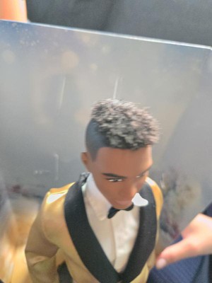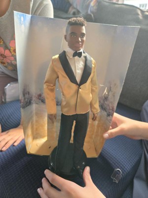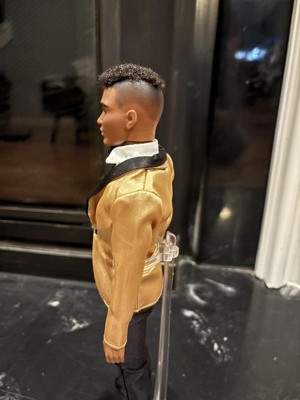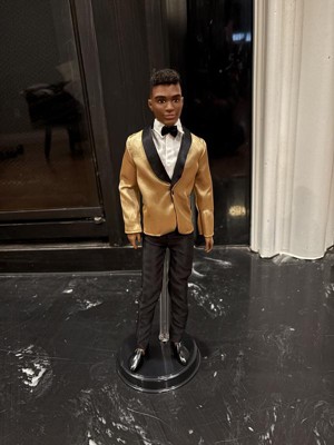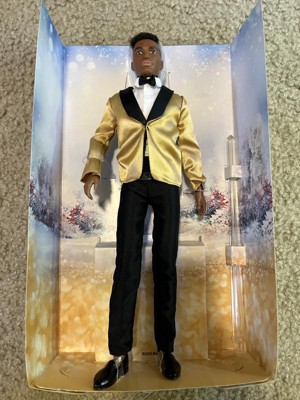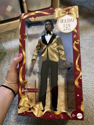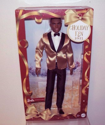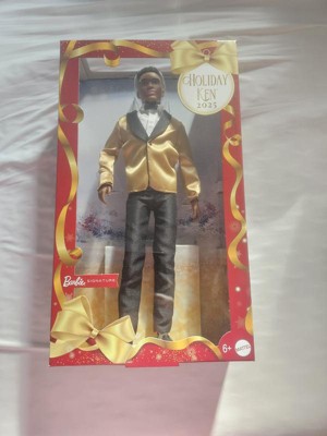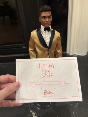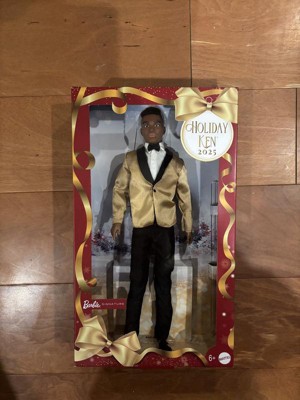 Barbie Signature 2025 Holiday Dark Brown Hair Ken Collectible Fashion Doll wearing Full Suit with Golden Jacket