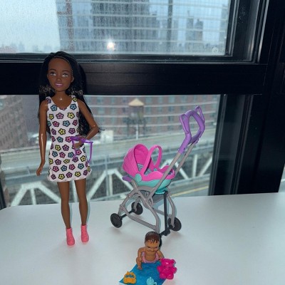 [This review was collected as part of a promotion.] The Barbie Skipper Babysitters inc doll and stroller playset is a fun set for any Barbie fan. It includes a cute little baby, stroller with detachable seat, Skipper doll and baby accessories. The stroller even bounces when you push it! The seat does feel a bit cheap but overall we are very happy. My daughter loves this set!