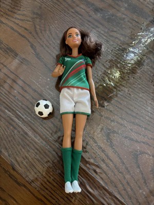 - ·Barbie soccer doll (11.5 in) features a uniform inspired by a globally popular color scheme!