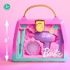 The Barbie Trend Stylist Tote has everything an aspiring stylist needs for exciting salon role-play with family and friends. This gorgeous pink and turquoise ombre set with gold accents comes with 9 fashionable accessories. Find a hairdryer with nozzle attachment, a mirror, 4 hair clips, a comb, and a seafoam-green play hair straightener. Stow all pieces in the 11-inch tote for on-the-go play with family and friends. The luxe finishes and beautiful colors on these trendy style toys are sure to elevate everyday playdates into fashion-forward fun days with friends and family. The Barbie Trend Purse Makeup Case makes a sophisticated birthday gift, holiday present, or anytime surprise for kids ages 3 years and up.