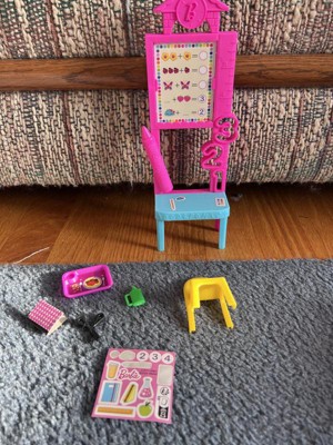 [This review was collected as part of a promotion.] I got this Teacher Barbie set for my daughter and she's so happy with it! She really loves Barbies and having sets with the different "age" dolls. With this one specifically, she enjoyed getting to recreate her Kindergarten experiences. She especially loved the little accessories that came with the set. She had a lot of fun with the display board - she immediately filled out all the math problems. The stickers were cute and my daughter used them to decorate the board and the desk. I thought it was a great set and my daughter did too!
