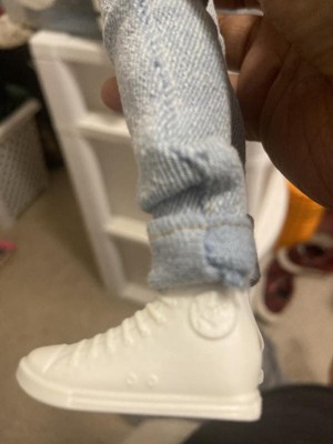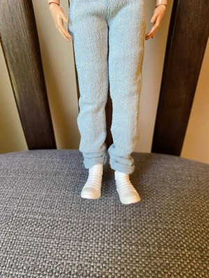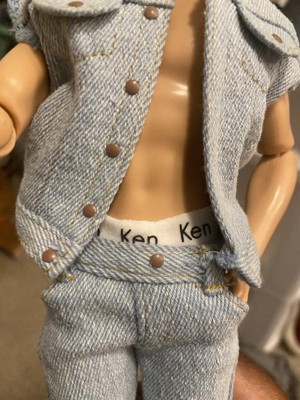 [This review was collected as part of a promotion.] Ken’s teeny tiny denim set feels like real jeans, complete with functional pockets.The sleeveless jacket is frayed around the shoulders. Is underwear have his name plastered on the waste band and gives a nod the 90’s. He wears white high tops shoes. Ken’s face looks generic but goes with campiness of the Barbie Movies. He also comes with a stand for display and a certificate of authenticity.