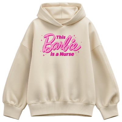 Barbie - This Barbie Is A Teacher - Women's Drop Shoulder Pullover Hood - Step into the glamorous pink world of Barbie with our officially licensed graphic garments for the fashion-forward! Whether you dream of being a fashion designer, a mermaid princess, or a world-traveling explorer, our garments bring Barbie's world to life with vibrant colors and playful prints. Crafted with quality materials and attention to detail, each piece ensures comfort and durability for all-day play. Express your unique sense of style and imagination with our exclusive Barbie graphic apparel!