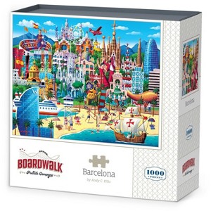 Barcelona by Andy C. Ellis Boardwalk traditional puzzles are proudly manufactured in the U.S.A. from domestic and imported materials. Our jigsaw puzzles are made with premium Eska puzzle blue board produced from 100% recovered paper. Each puzzle comes in a collectable box with magnet close, includes a full-color reference poster, and contains resealable bag for puzzle storage. Boardwalk traditional puzzles are precision cut to fit tightly and "snap" together.