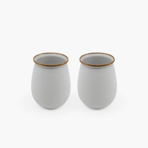 Eggshell's creamy white color and speckled texture make dishes pop and creates a gorgeous, curated look on any table.Each item features a speckled enameled surface hand-finished baked stainless steel trim creating a bronze-like patina finish, resulting in unique pieces that form a cohesive set.Hand wash only. Do not microwave.Each individual product sold as set of 2.