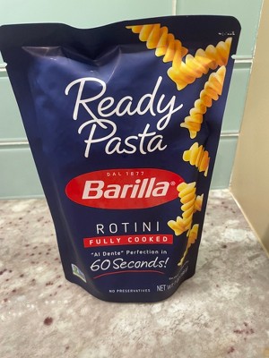 Barilla Ready Pasta Rotini is a fully cooked pasta that's ready in the microwave in just 60 seconds. Made with 3 simple ingredients—a dash of extra virgin olive oil, a pinch of sea salt and authentic Barilla pasta—Ready Pasta has no preservatives and is non-GMO certified. Simply heat the pouch in the microwave then add your favorite pasta sauce or toppings for a quick and delicious dish or pasta meal.