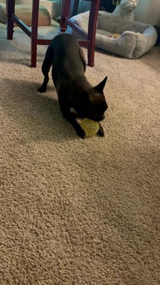 [This review was collected as part of a promotion.] I was so excited to get this for my pups. I was kinda skeptical with it being stuffed because I knew it probably wouldn’t last long with my dogs but knew they would enjoy it while it lasted. It lasted maybe a couple of days. Came home from work and noticed stuffing all over the kennel. My dogs are chewers so anything stuffed is a waste cuz it won’t last and just gets destroyed. The ball is still intact currently. If your dog is a chewer like mine, I wouldn’t recommend getting this because it will be destroyed.