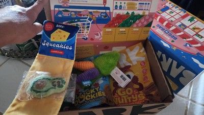 [This review was collected as part of a promotion.] My dog loves this! This is so adorable, and so amazing how it comes with two bags of treats, toys and a cookie!! My puppy was so happy and went through the box himself!