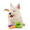 2 Grocery-Themed Toys: A whip-n-flip Rainbow-wow Carrots and crinkly BARK Squeakles—perfect for satisfying your dog’s squeak tooth!