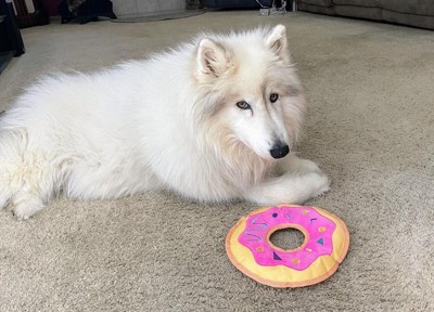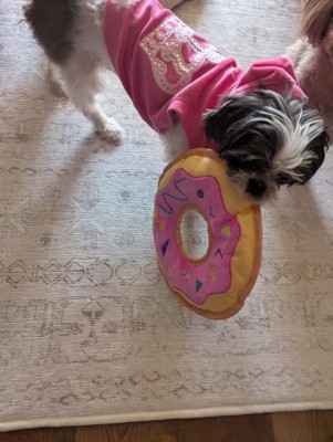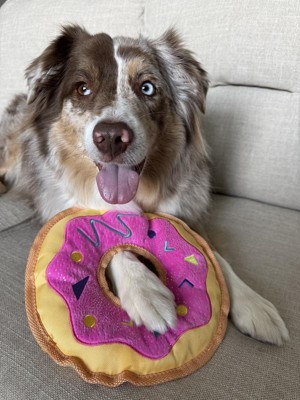As soon as this donut toy arrived with all its fluff and crinkle goodness my dog knew it was for him and excitedly took it. It’s soft enough to toss in the house like a frisbee for catch but durable enough for him to play with on his own. Highly recommend this donut toy for your furry friend.