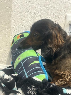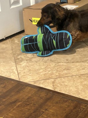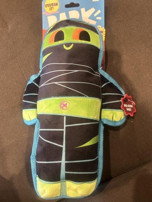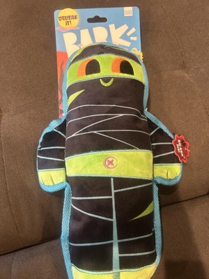 What a cute toy for the non aggressive chewers in your life. I have 5 dogs in my household with 4 of them being aggressive with their toys. They like to play tug-a-war together or even fetch and if there is a squeaker in a toy they want it out. With that said this mummy didn’t make it to the 24 hour mark before I had to repo it. This is a well made toy with good heavy fabric and good stitching so if your dog isn’t too destructive I would recommend this.