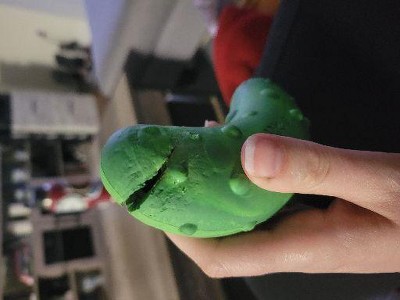 A: Hi there! This toy has an embedded squeaker, meaning it has a small squeaker plug inside the toy. It does not have a big squeaker like a plush toy would. Please email our team at happy@bark.co so we can gather pictures from you and help with this further!