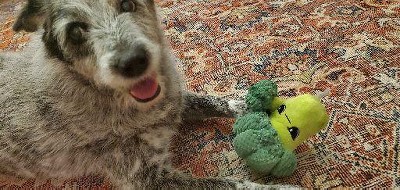 My girl carries her broccoli EVERYWHERE, runs 50 laps around the acre first thing every morning squeaking her Broccoli and livin’ her best life!! I have 4 backups, just in case!!