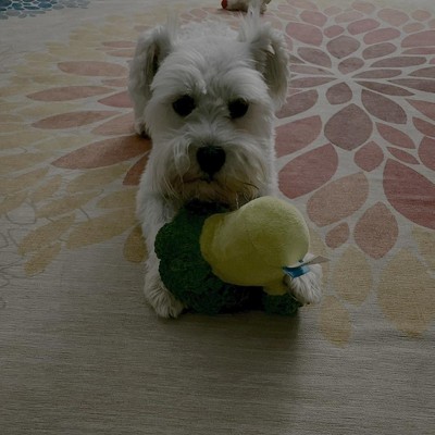 It was a great toy and my Shih Tzu absolutely loved it, but she loved playing tug-of-war with it with me, but unfortunately the seam opened up between the head of the broccoli and the stem of it and so I had to throw it away because the stuffing was coming out. She even knew the name of it and would go to get it when I said, “go get your broccoli“. I am ordering another one and hoping that it lasts. Maybe the one I got the last time wasn’t sewn as well as it should’ve been. We’ll see. I do think $10 is a lot for something that doesn’t last especially with a smaller dog playing with it.
