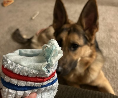 Dog just loved trying to get snacks out of sock. Kept him busy for quite awhile