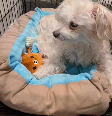 [This review was collected as part of a promotion.] This is a really cute dog toy. I love the theme of coffee and cookies and the toy is very well made. The stitching is decent and it looks like it will hold up for many years and many tugging sessions. This is also the perfect size for my 15lb dog. He loves squeaker toys and tugging toys so this works perfectly for him. I think this would be great for any dog who enjoys fetch or tugging or just likes to chew on things.