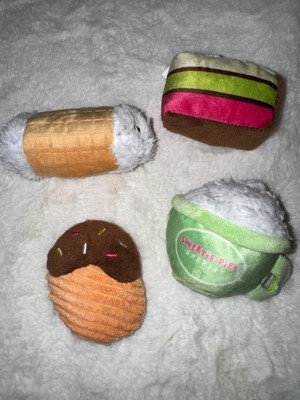 [This review was collected as part of a promotion.] These are technically small dog toys, but my 9-month-old kitten absolutely loves them! They’re the perfect size for batting around, carrying, and tossing in the air. The plush texture is soft enough for him to bite and wrestle with, and the cute dessert designs make them even more fun. He stays entertained for long stretches and keeps coming back to them throughout the day. Even though they’re marketed for dogs, they’ve held up well to kitten play and have quickly become some of his favorite toys. Definitely a fun, versatile option for pet households with cats too 🐱✨