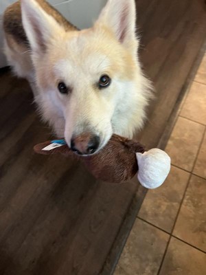 [This review was collected as part of a promotion.] My fur baby Teddy is really loving his new toy. It is so adorable! He lives squeaky the squeakier. The quality is good and durable. My fur baby is very happy with his new toy.