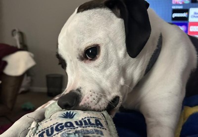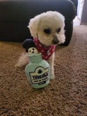 This Tugquila toy was a fun one for my dog. She doesn't always play with toys but I got her interested in this one for awhile probably because of the fun sounds it makes. It's a sturdy toy that seems well-made, and it's cute as a play on a delicious drink!