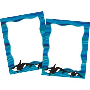Barker Creek's Whales Computer Paper is affordable and beautiful. It features a border of beautiful blues and greens with orca whales at the bottom. Use it to add a memorable touch to letters, design custom awards and certificates, add an extra "wow" to presentations and reports, create gorgeous invitations, make stunning bulletin boards, and so much more! Each set includes 100 sheets of decorative paper which is compatible with most laser printers. Coordinating products available: Search Barker Creek Sea & Sky.
