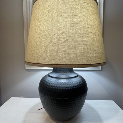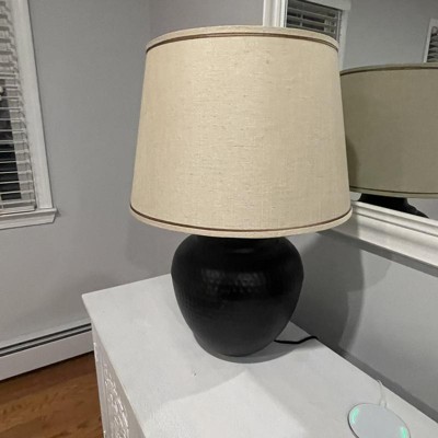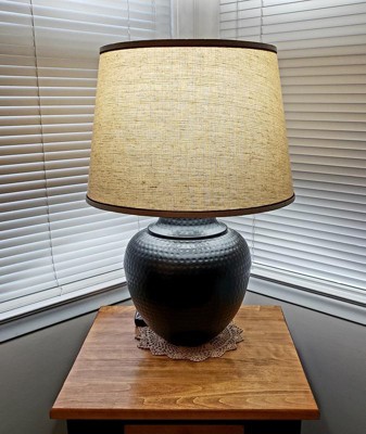 Barnes and Ivy Brighton Rustic Farmhouse Table Lamp 27 1/4" Tall Hammered Bronze Pot Beige Linen Drum Shade for Bedroom Living Room Bedside Nightstand