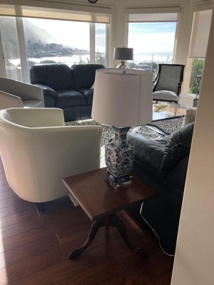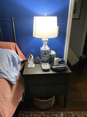 Barnes and Ivy Iris Asian Table Lamp 28" Tall Porcelain Blue Floral Jar Geneva White Drum Shade for Bedroom Living Room Bedside Nightstand Office Kids