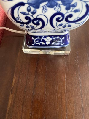 Barnes and Ivy Iris Vintage Style Table Lamp 28" Tall Blue White Floral Geneva with Table Top Dimmer White Drum for Bedroom Living Room Bedside Office