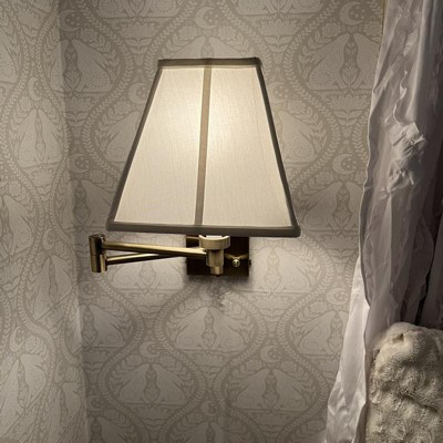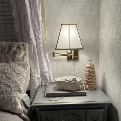 Barnes and Ivy Swing Arm Wall Lamp Antique Brass Plug-In Light Fixture Ivory Fabric Square Shade Bedroom Bedside Reading