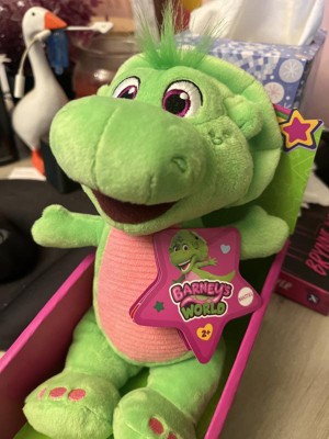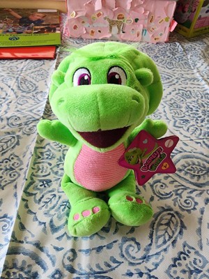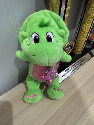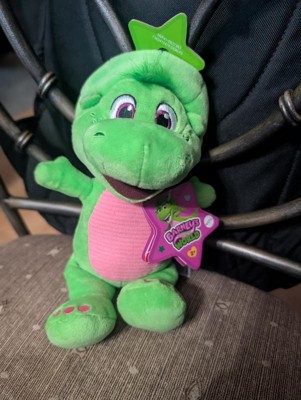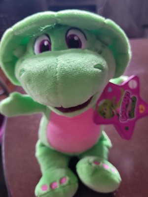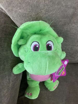 - Kids can cuddle & play, at home or on the go, with this 8-inch plush toy styled like Barney’s World character Baby Bop