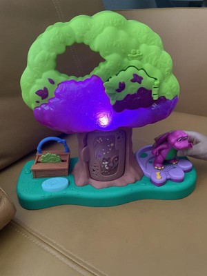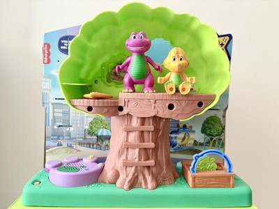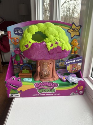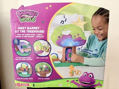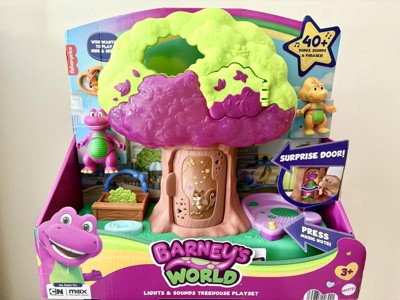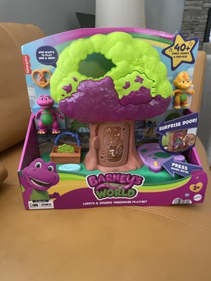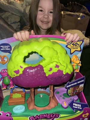 [This review was collected as part of a promotion.] I was so excited to get this Barney Treehouse for my kiddos as I loved Barney, as a kid. It did not disappoint! The secret door in the tree was a huge hit for my kids and, of course, they loved the open play on the reverse side of the tree! Perfect for little hands and easy to move about and play. Music is clear and at a decent level! Definitely recommend!