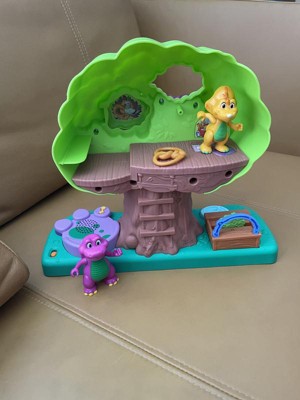 [This review was collected as part of a promotion.] My son loves this Barney tree house! Comes with a Barney and BJ figurine, wish it came with Baby Bop to though. It does play sayings and music from Barney! My son loves the little turn about thingy in the tree trunk he can put the characters in! The colors are very vibrant and fun also!