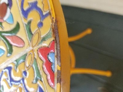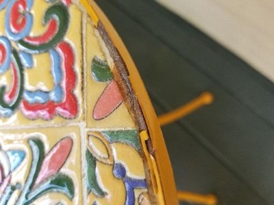 Q: Is the top of this table actual cut ceramic tiles, filled with grout? I saw some where design was just painted on. TIA